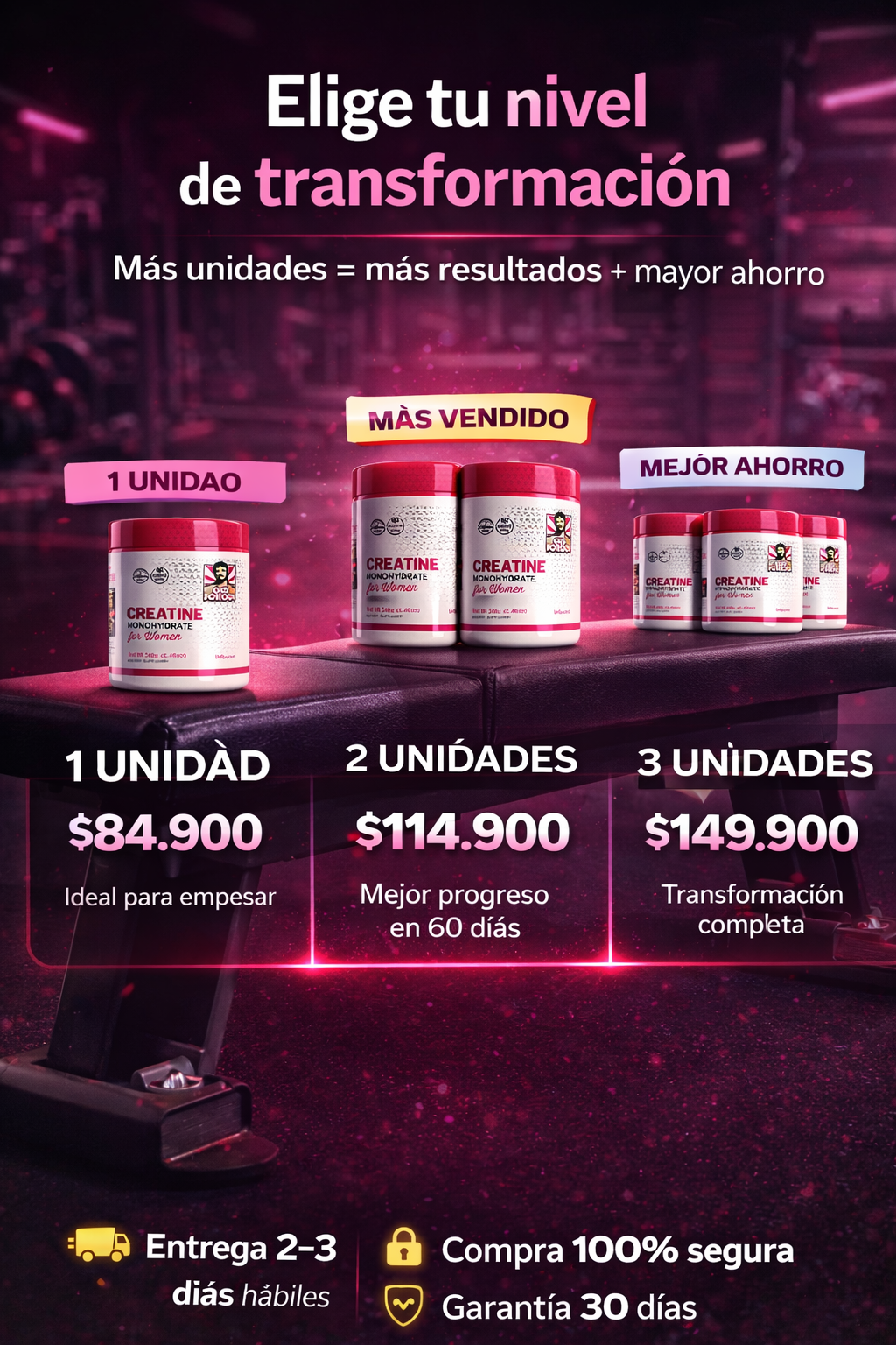 Perfecta para mujeres activas. Recuperación rápida y más resistencia en cada sesión.