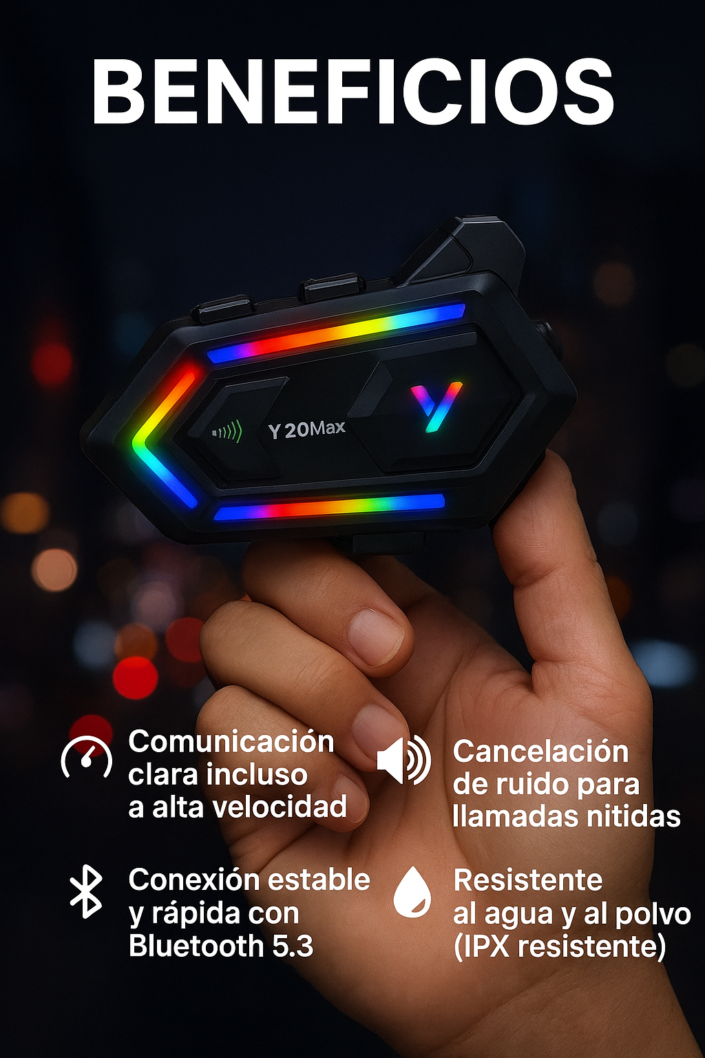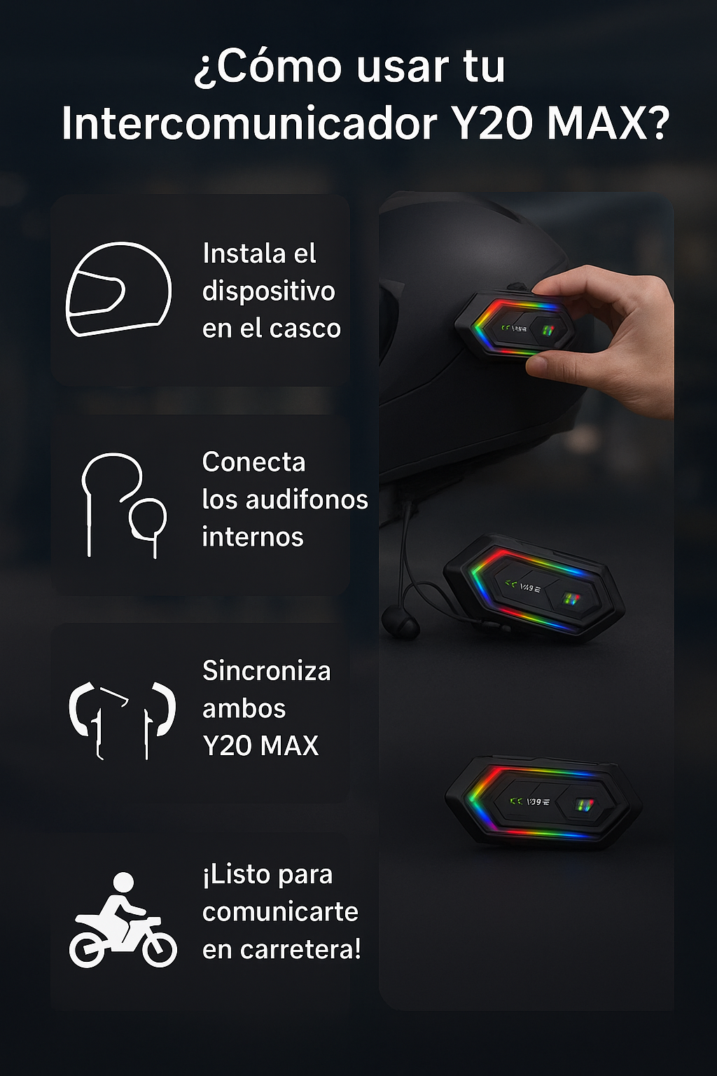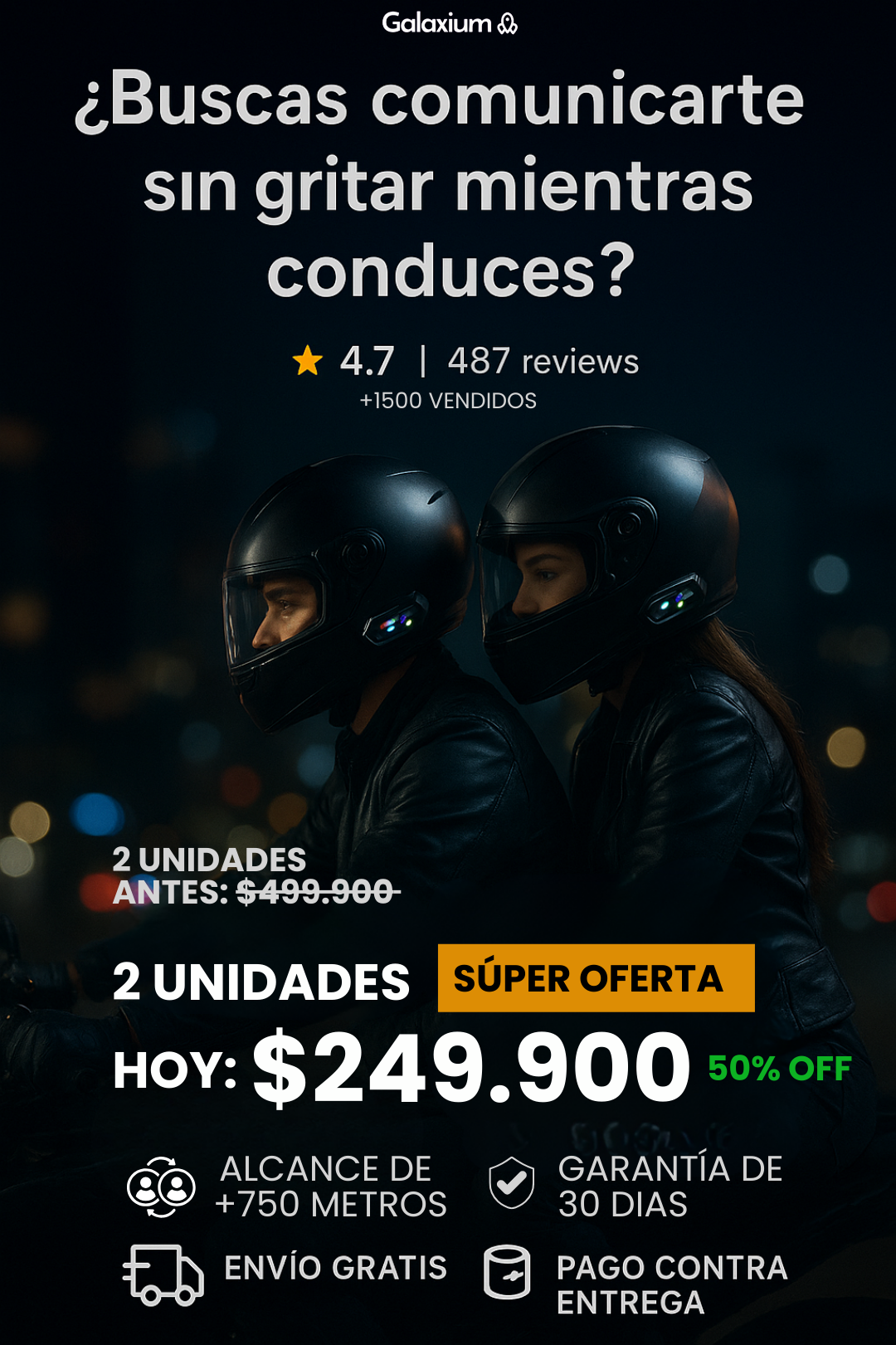 Ideal para grupos, conecta hasta 6 motos y el alcance de 1.5 km es impresionante.